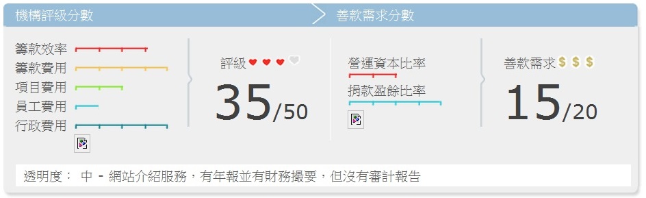 (機構評級資料來源: 明施慎選 http://www.theidonate.com/)