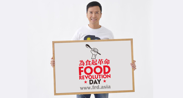 (香港,5月16日) 為響應英國烹飪節目《大城小廚》主持人兼靚仔廚神傑米•奧利佛 (Jamie Oliver) 帶頭發起的全球飲食革命運動 - 《為食起革命》 (Food Revolution Day),短短一個月間,全球接近90萬人加入聯署行動,要求各地政府推行飲食教育。當中支持的名人包括 珍妮佛安妮斯頓 (Jennifer Aniston)、艾頓·莊爵士 (Sir Elton John)、羅拔唐尼 (Robert Downey Jr.)、小賈斯汀 (Justin Bieber)、奧蘭多布魯 (Orlando Bloom)、P.Diddy、Kim Kardashian 等。與此同時,Jamie Oliver亦號召全球近二十名具影響力人士,協助呼籲民眾參與是次飲食革命活動。在亞洲成功邀得甄子丹先生作為代表,並於國際間邀請到理察·布蘭森爵士 (Sir Richard Branson)、桂莉芙·柏德露 (Gwyneth Paltrow)、Cody Simpson 等名人發聲支持。