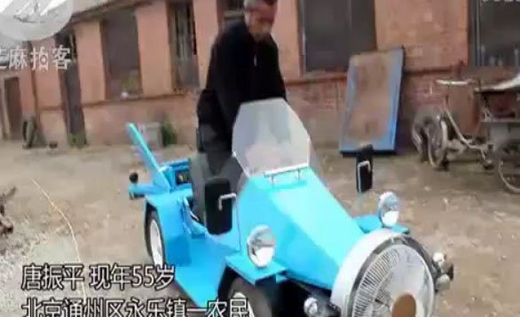 五十五歲的唐振平最近製造了一輛由風能和太陽能推動、零排放的車。這輛可愛的藍色車子絕對不是殘舊的老爺車,可以駛至90米的範圍。
