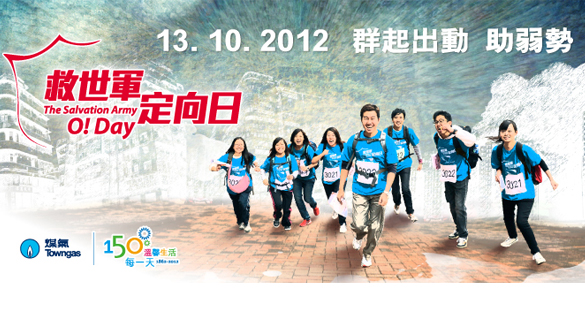 內容:「救世軍定向日2012」邀請參賽者再次群起出動,在港九兩區追蹤救世軍與煤氣服務香港市民的古今足跡,並同心籌募善款,扶助社會上的弱勢社群。