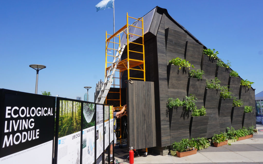 據聯合國環境規劃署(UNEP)統計,每年建築業共消耗全球約 40% 的資源,佔全球總碳排量的 1/3。為回應這項問題,聯合國環境規劃署與美國耶魯大學合作,在今年的永續發展高階政治論壇(High-level Political Forum on Sustainable Development)發表一款名為Ecological Living Module的住宅模型,並於美國多個城市及非洲等地作巡迴展覧,向大眾展示未來永續住宅如何可減低對環境的負荷,以促進永續都市化發展。