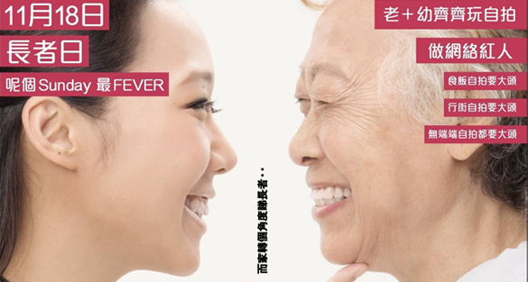 長者安居協會於11月18日《長者日》發起「老+幼齊齊玩自拍」活動,鼓勵大家關懷長者,與家中一寶玩自拍並上載相片至長者安居協會臉書專頁,讓長者也緊貼潮流。