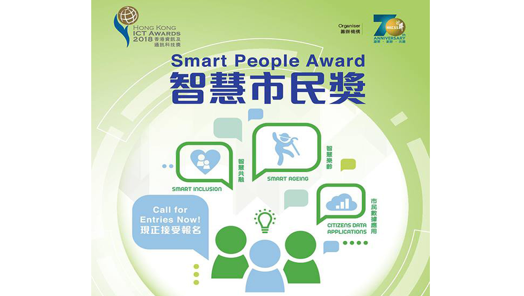 成立於二零零六年,香港資訊及通訊科技獎由政府資訊科技總監辦公室策動,香港業界組織及專業團體主辦,目的是為香港建立一個廣受香港社會愛戴、並獲國際認同的資訊及通訊科技專業獎項。2018香港資訊及通訊科技獎設有八個類別的獎項。每個類別均設有一個大獎,而最終評審委員會會再從所有大獎中甄選出「全年大獎」。其中包括今年新增的「智慧市民獎」,共設三大組別,包括1) 智慧共融、2)智慧樂齡、3)市民數據應用,冀藉此表揚社會各界致力發展相關的 創新資訊科技產品,投入到相關社會服務,以促進弱勢社群參與、回應老齡化社會的挑戰,及提高市民生活質素。由即日起至 2018年1月12日 接受報名。得獎單位將可獲包括 一年免費登記數碼港之協助服務、參加投資配對活動,以及代表香港 參與國際獎項及比賽, 頒獎禮將於2018年 3月份舉行。