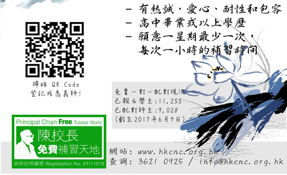 – 願意一星期付出一小時的補習時間,並持續服務最少三個月