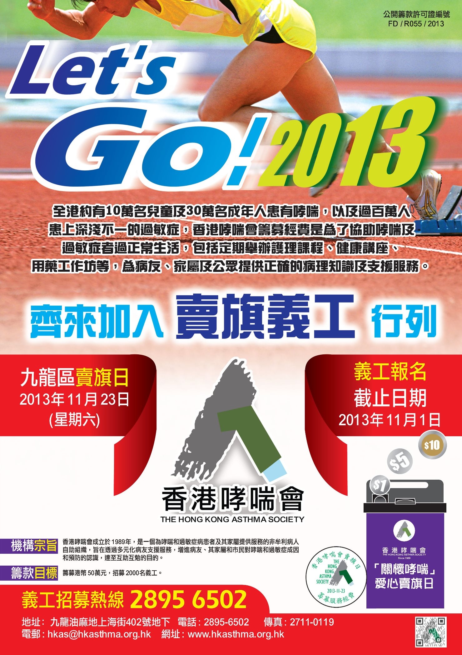 香港哮喘會將於2013年11月23日(星期六) (7:30am – 12:00pm) 在九龍區賣旗籌款,