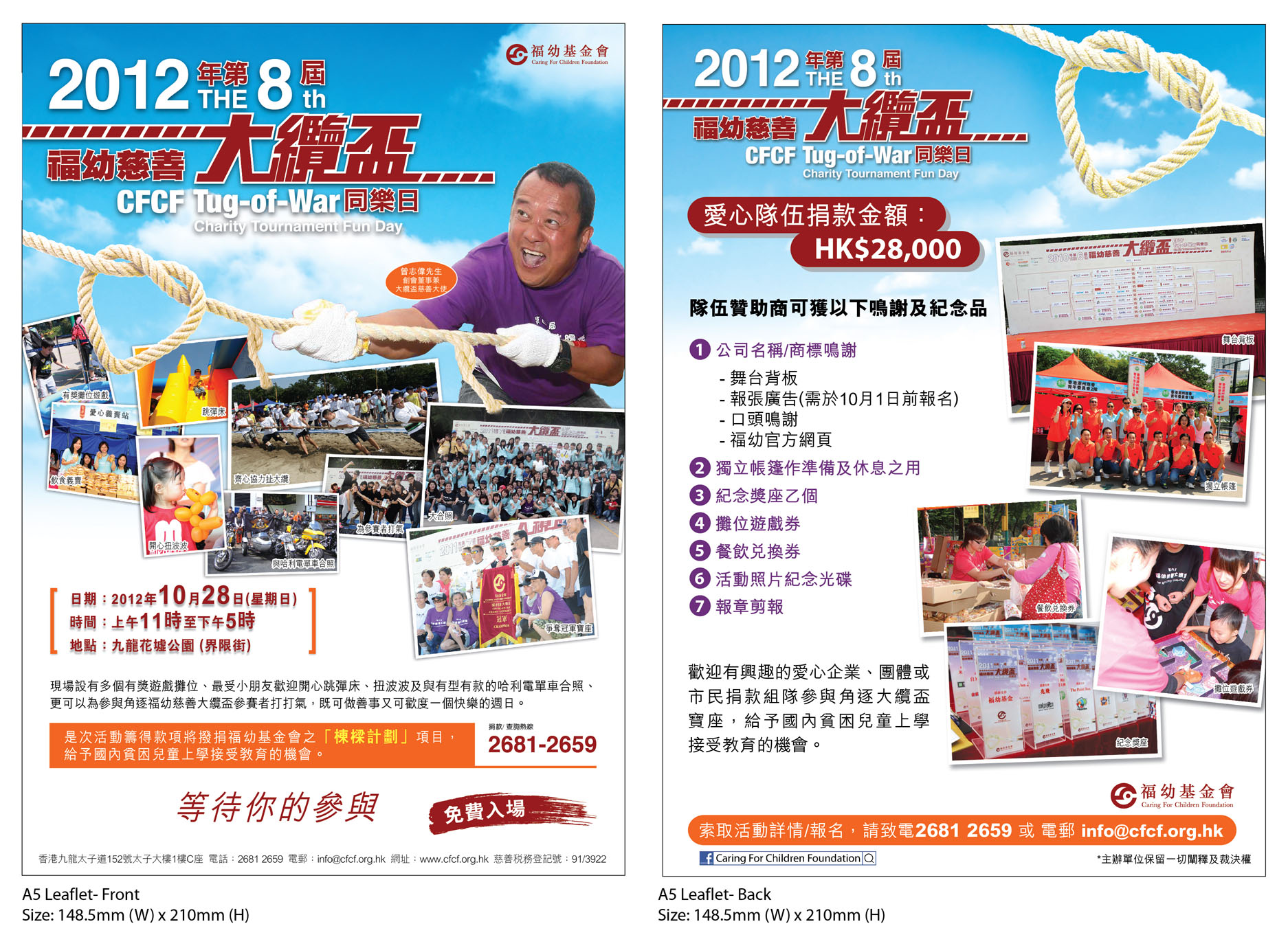 Background: CFCF aims to become a soul education platform for kids in China and Hong Kong. The CFCF Tug-of-War Charity Tournament Fun Day is the biggest annual fund raising event of CFCF. All funds raised will be used to help underprivileged kids / orphans to attend school.