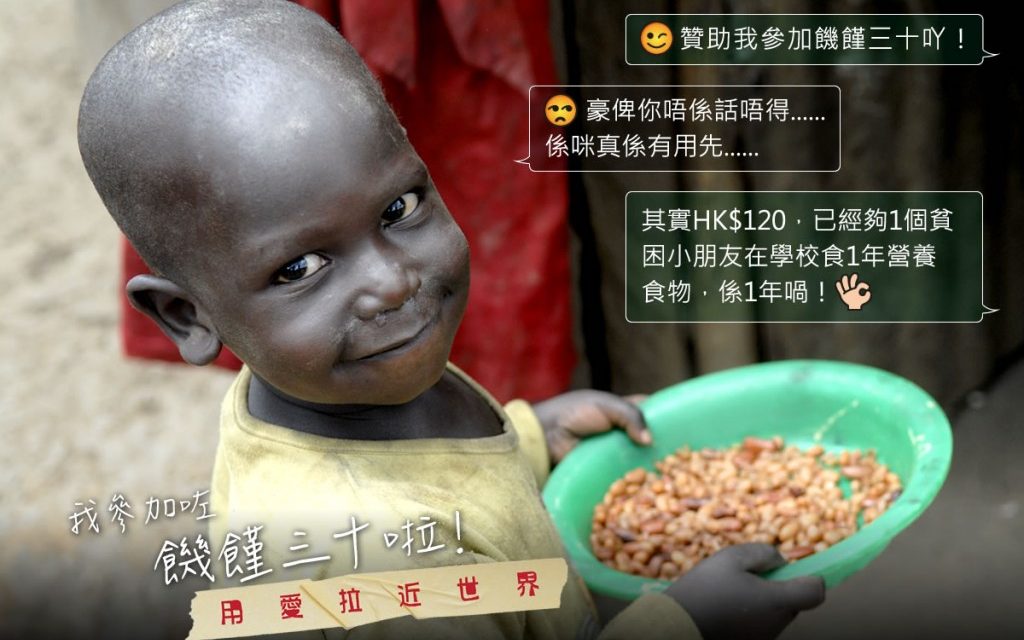 Detail: Participants may join the 30 hours famine experience camp (quota: 3,200 pax. 1,800 pax with camp provided). First come first served. Minimum donation for 30 hours famine experience camp will be HK$ 1,200.