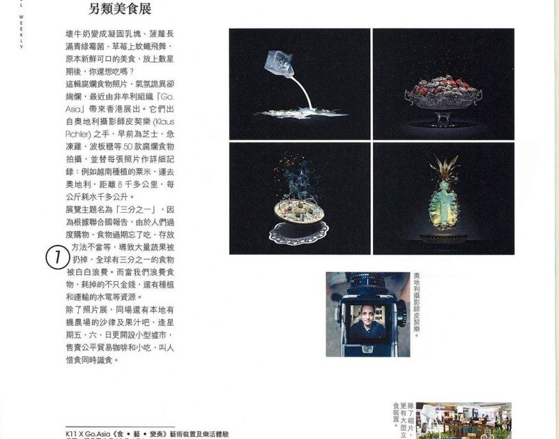展覽主題名為「三分之一」,因為根據聯合國報告,由於人們過度購物、食物過期忘了吃、存放方法不當等,導致大量蔬果被扔掉,全球有三分之一的食物被白白浪費。而當我們浪費食物,耗掉的不只金錢,還有種植和運輸的水電等資源。除了照片展,同場還有本地有機農場的沙律及果汁吧,逢星期五、六、日更開設小型墟市,售賣公平貿易咖啡和小吃,叫人惜食同時識食。