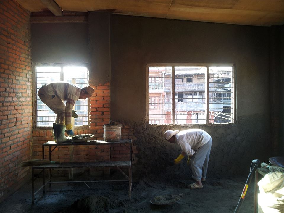 working on the interior wall