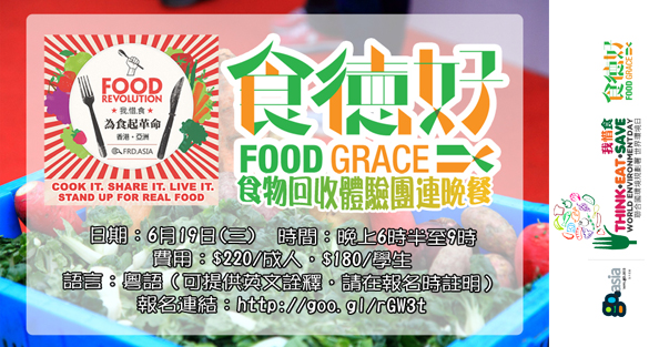 Detail: In response to UNEP’s World Environment Day 2013, local ngo Food Grace’s Food Recycling Scheme, together with Go.Asia are organizing a “Food Recycling Experience Tour x Dinner” activity on 19th June. Participants can experience how food recycling takes place and how Food Grace works, and of course, to enjoy a ‘low carbon emission’ supper!