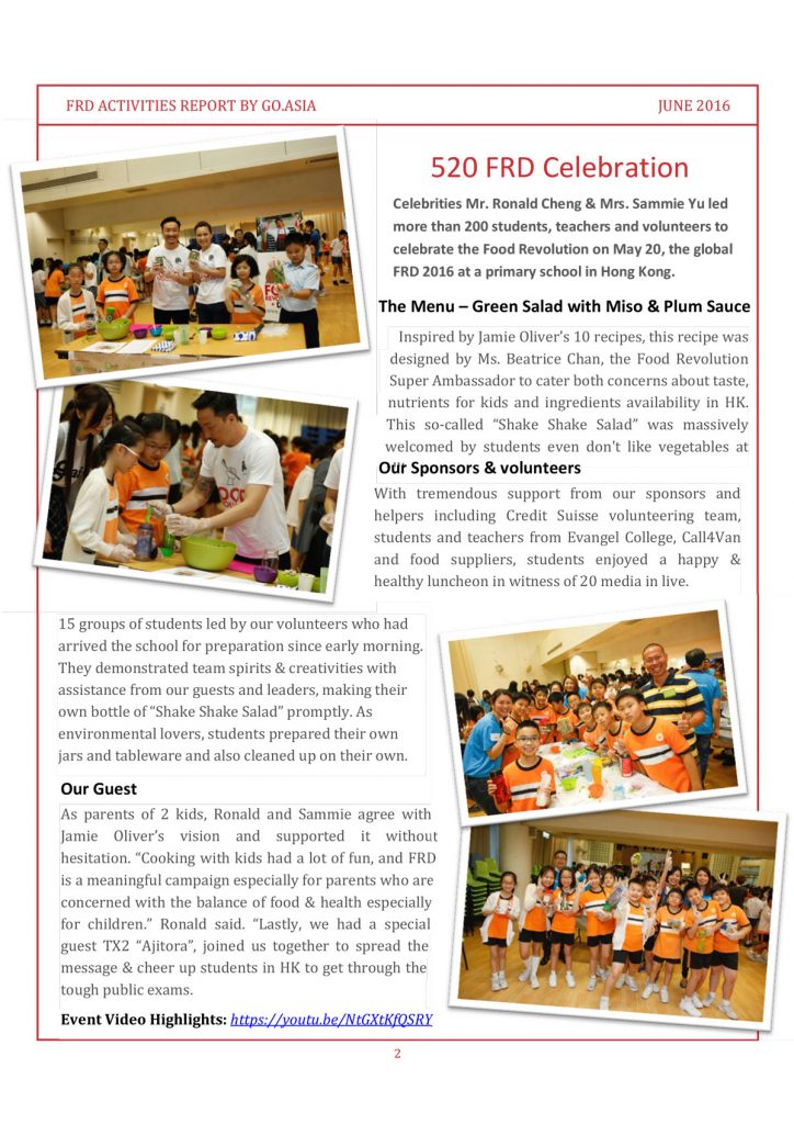 This year Go.Asia are very pleased to completed 5 promotional activities & 7 school activities in May to bring awareness in town for the Food Revolution Day & Healthy Diet