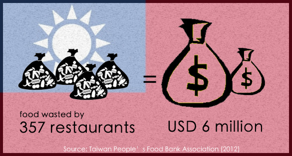 · Alone in Taipei, the 357 restaurants threw away food that equivalent to USD6 million every year.