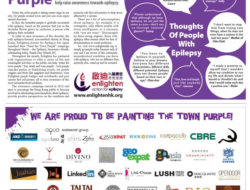 Go.Asia 全力支持香港啟迪會舉辦的關注腦癇紫色日。「紫在乎你」和「關注腦癇紫色日」的活動目的是希望獲得香港社會的支持,提高對腦癇症的關注。