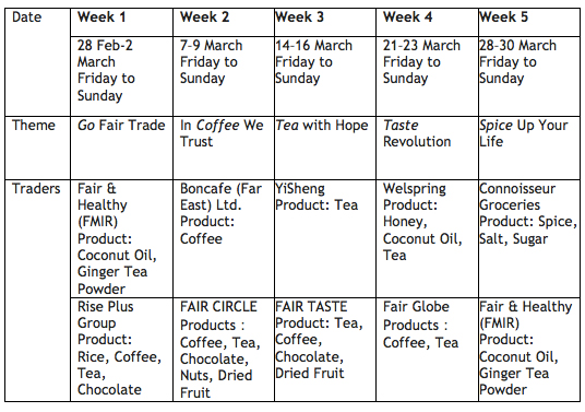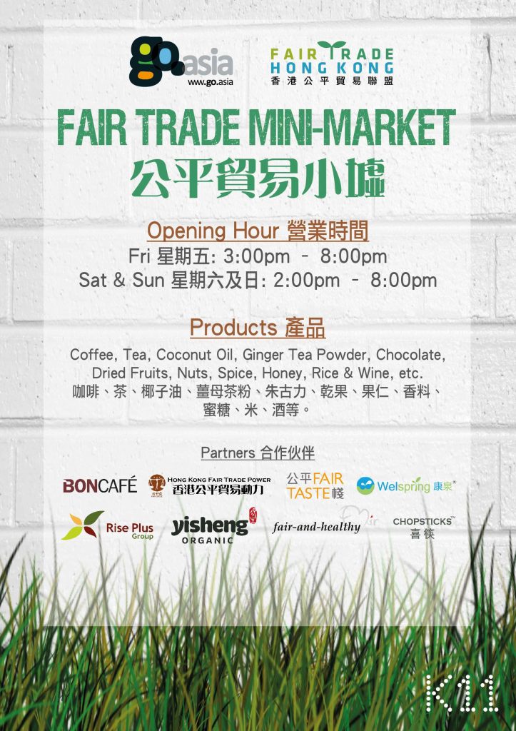 The Fair Trade mini-market is supported by the Fair Trade Hong Kong Foundation. Trader partners of the foundation will be introducing and offering their products during Fridays and weekends.