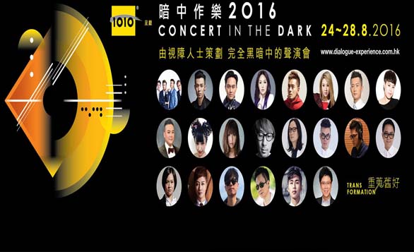 Concert in the Dark, the world’s first concert organized by the visually impaired and held in complete darkness, have been receiving raving reviews over the years. Its success represents unlimited creativity, social inclusion and a unique experience, where in complete darkness, the visually impaired swaps places with its audience. As organized by Dialogue Experience and co-organized by People Mountain People Sea, Concert in the Dark 2016 is entering its sixth year in HK.