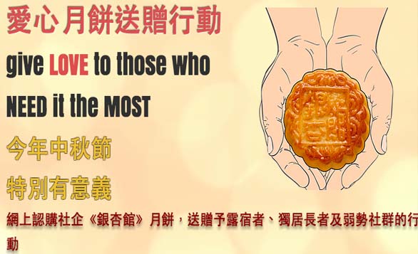 Buy a moon cake from us and we’ll give it to someone who needs it.We plan to give moon cakes to the homeless and other underprivileged groups in HONG KONG. The week before September 10, 2016. We will notify you of the exact date a little later via email