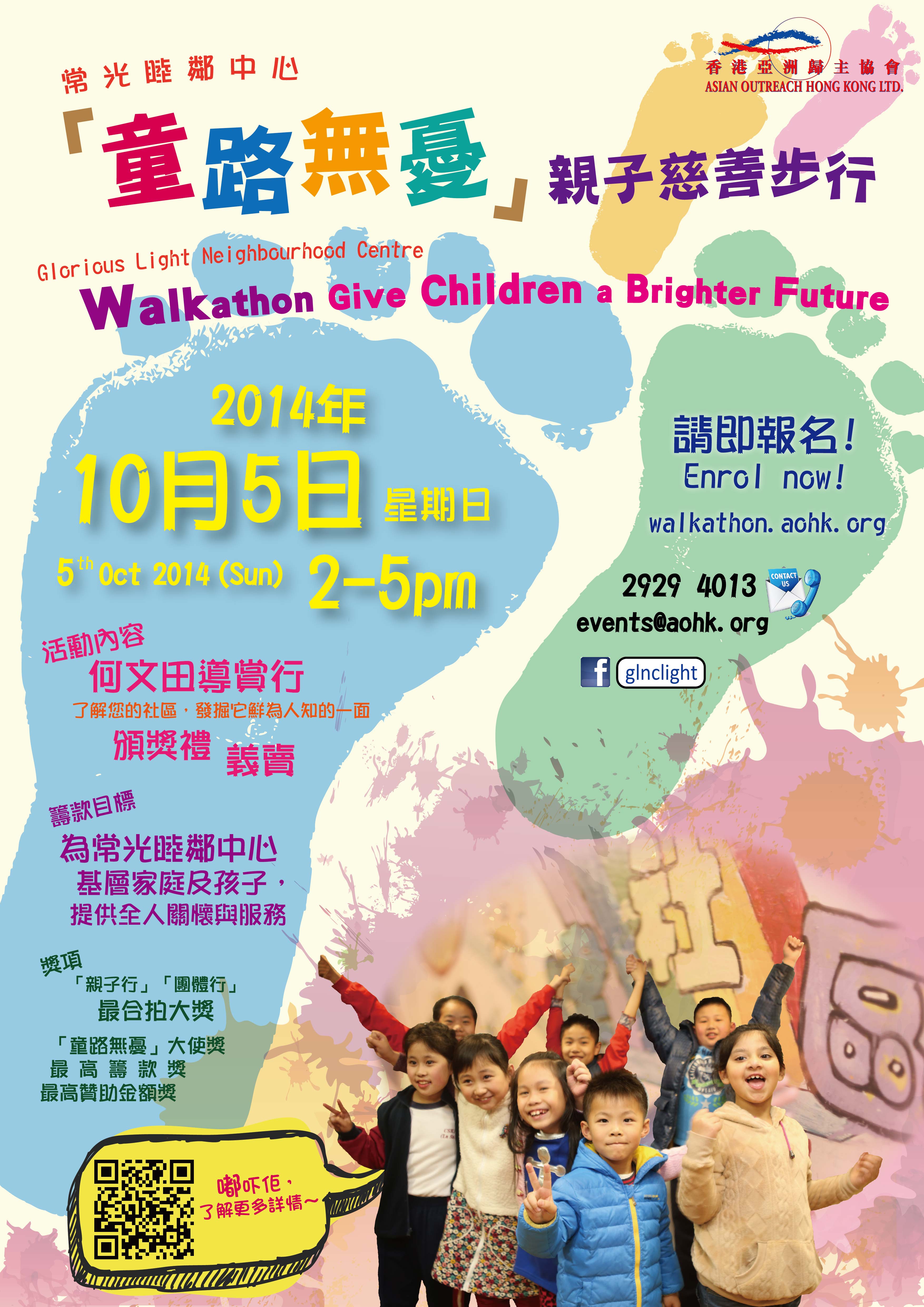 Detail: To raise fund for “Glorious Light Neighbourhood Centre” to provide holistic services for low-income families and children, AOHK will organize “Walkathon – Give Children a Brighter Future” on 5 Oct 2014 (Sun). Through the docent tour, it is hoped that the community awareness and harmony can be enhanced.