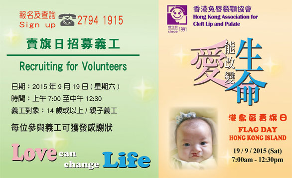 Background: Being a registered non-profit organization and charitable institution exempt from tax under Section 88 of the Inland Revenue Ordinance, Hong Kong Association for Cleft Lip and Palate is the one-one in Hong Kong that provide support services for patients with cleft lip/palate and their parents / caretakers, as well as pregnant mothers bearing affected babies. We are also members of Hong Kong Council of Social Service, Alliance for Patients Organizations and Hong Kong Committee on Children’s Rights.