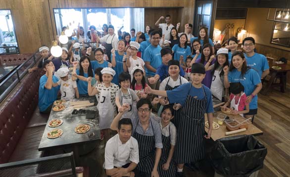 Jamie’s Italian HK supported the 5th Food Revolution Activities with a public day of fun games and challenges on 29 May. First of all, a special “Eat Smart Little Chef” Pizza making workshop are open for public participation from 10-11am. 20 pairs of little chef teams formed by an adult and a kid (aged 6-12) joined the chef from Jamie’s Italian HK to make their own Green Salad and creative Pizza with natural ingredients.