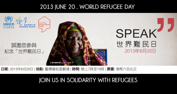 Detail: On World Refugee Day, 20 June, SPEAK will honour the refugee experience through live music, drama and photography presented by Hong Kong-based refugees and asylum seekers.