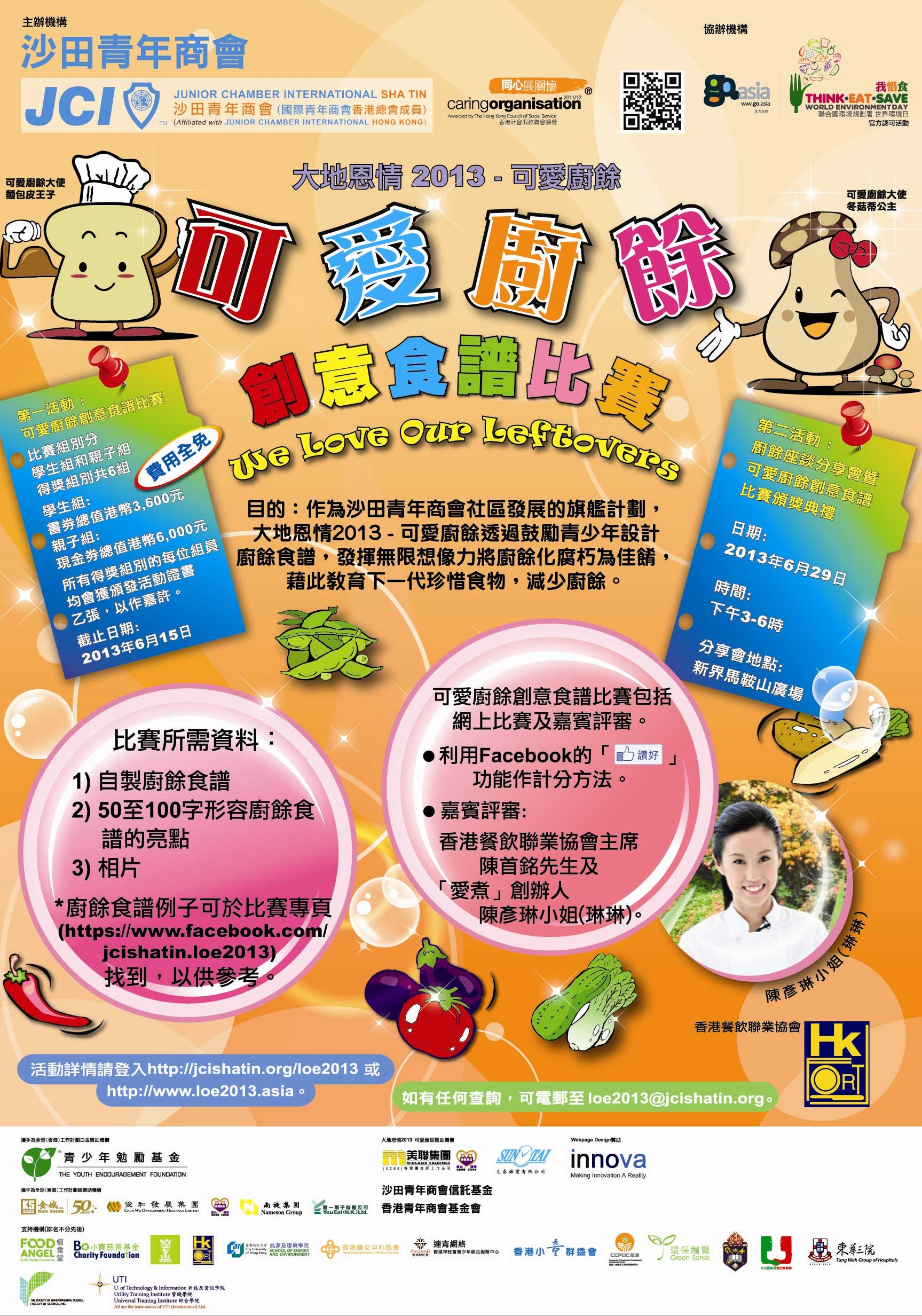 Detail: In response to UNEP World Environment Day 2013, and partnership with the Junior Chamber International Sha Tin, Go.Asia will be co-organizing the “Love the Earth 2013” – Leftover’s recipe competition & public sharing session in Hong Kong in June. Participants can submit their entry as individual or as family, by posting the image to event Facebook Page. Winners will be rewarded with cash or book coupons. Submission deadline: 15 June. For details, please refer to event website or the Facebook Page.
