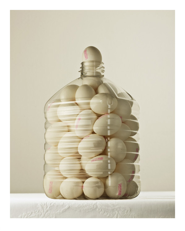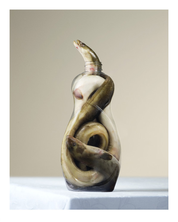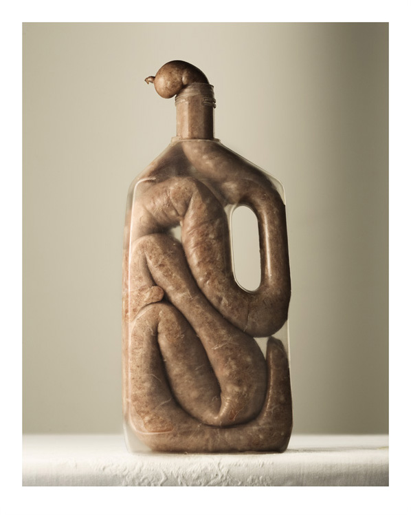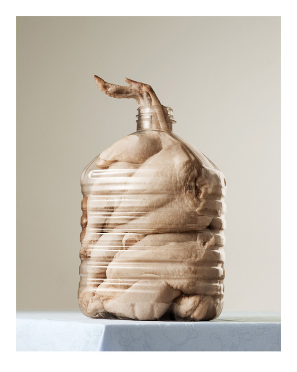 “MÆT” consists of reproductions of meat, vegetables, pasta and other foods which are claustrophobically placed in various synthetic plastic containers.