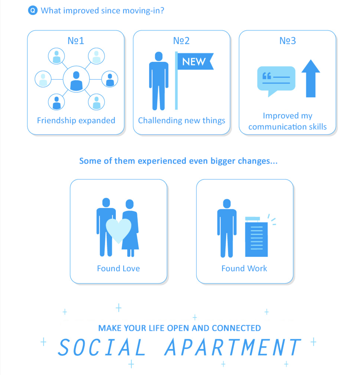 According to internal survey, the demographic of the tenants is around 80% Japanese & 20% non-Japanese. This is the best option for foreign people or students coming to the city, to get to know Japanese culture and make friends with social gatherings hosted by Social Apartment. Moreover, it is opened for overseas booking easily so it becomes another good news with the extension of working holiday visa policy to citizens of Australia, Canada, Denmark, Germany, France, Ireland, Korea, New Zealand, the United Kingdom.