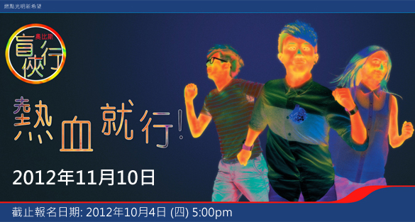 Read More你是否一個熱血指數爆燈的人?有否懷念和朋友們瘋狂的青蔥歲月?若看到社會不公義的事,你會否為弱勢社群發聲?在遇到困難的時候,有沒有豁出去拼拼看的念頭?有沒有為了讓這個世界更美好而努力爭取的勇氣?請支持2012 奧比斯「盲俠行」。