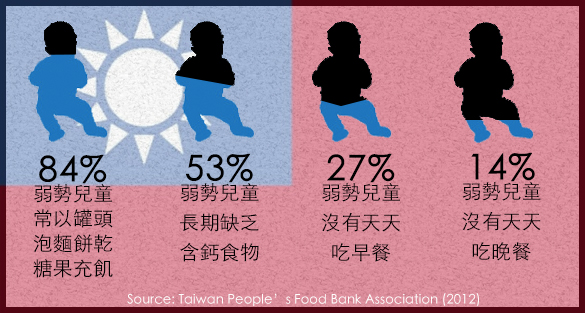 Read More· 84%弱勢兒童常以罐頭、泡麵、餅乾、糖果充飢 · 53%弱勢兒童長期缺乏含鈣食物 · 27%弱勢兒童沒有天天吃早餐...