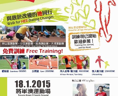 Read MoreThe first “Racewalk for HER” was organised in January, 2014. It was successful to attract over 200 enthusiastic participants to join the race, and raised HKD200,000 for HER Fund!This year, “Racewalk for HER 2015” will be held on 18th January, 2015 (Sunday). Check it out!