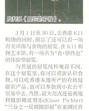 (Chinese Only) 美豔的攝影作品背後是殘酷的浪費 K11購物藝術館舉辦奧地利攝影師Klaus Pichler《三分之一》攝影展 即日起至30日,去香港K...