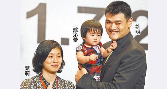 Yao Ming visited school with his wife and their 3 years old daughter