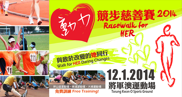 The aim of “Racewalk for HER 2014” on 12 January 2014 (Sun) is to raise funds for HER Fund to support empowerment projects for marginalised and disadvantaged women and girls in Hong Kong. Click here for details.