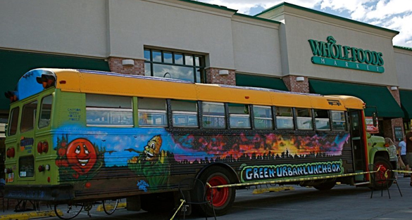 Okay, so the school bus is actually still classic yellow in colour, but it is so packed with green...