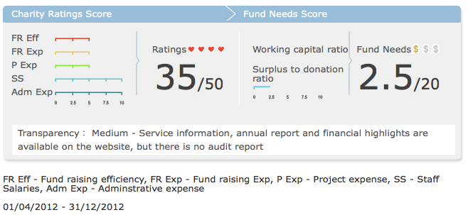 (Source of Charity Ratings: iDonate http://www.theidonate.com/)