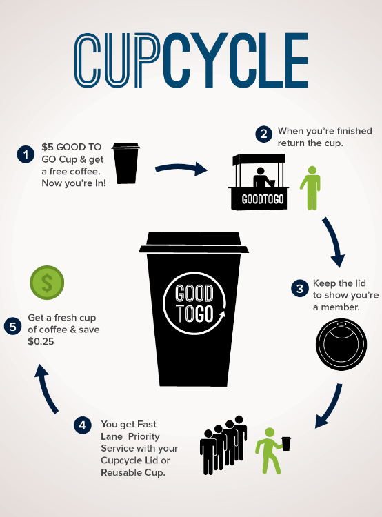 GOOD TO GO is a team of 18 change-makers from 16 countries extending to partners and collaborators around NYC. They have initiated the Cupcycle Project in echo to Earth Day 2014, in order to change the way New Yorkers enjoy their coffee. They want to improve the to-go coffee experience and reduce waste at the same time.