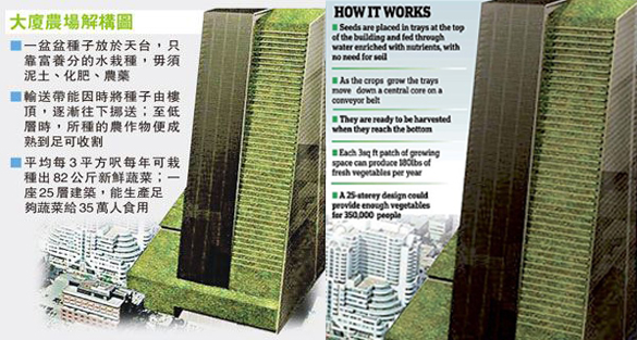 Some supermarket foods such as tomatoes and strawberries are already grown on farms using a primitive form of the so-called hydroponic system. Now there are sophisticated plantscrapers planned or under construction in Sweden, Japan, China, Singapore and Chicago in the U.S.