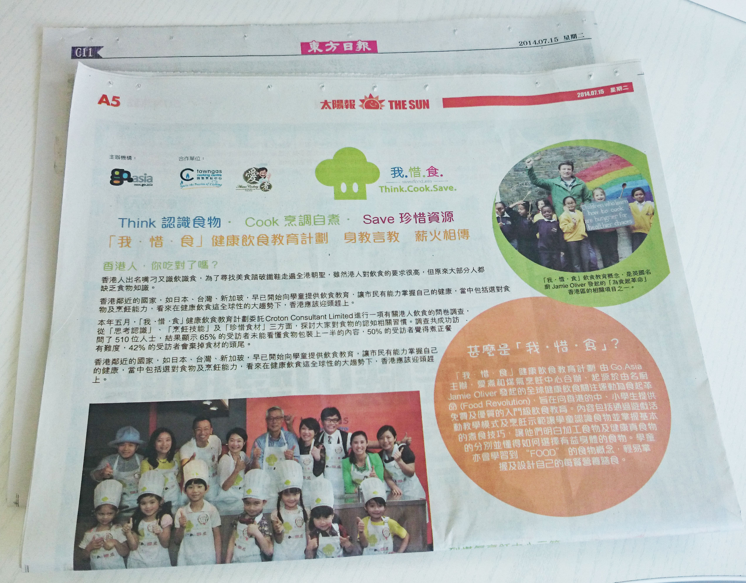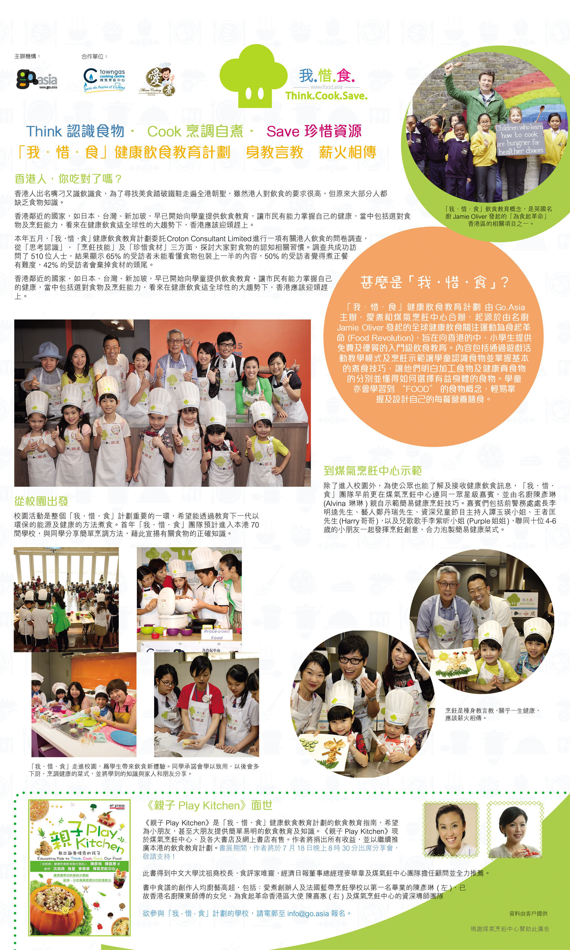 Thanks to The Hong Kong and China Gas Company Limited, a series of advertorial has published in July to further promote the Think.Cook.Save. Health and Food Education Program through mass media channels.