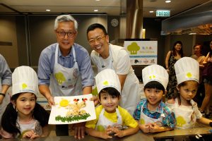 Celebrities, including former Commissioner of Police Mr Dick Lee, famous artist Egg Cheng, children’s show hosts Helen Tam, Harry Wong, children’s songwriter Purple Lee, and Alvina Cookery founder Alvina Chan, took part together with nine mini masterchefs to express their enthusiastic support towards this meaningful program. Reinforcing the concept of ‘Igniting the Passion of Cooking’, Alvina encouraged home cooking and strengthened the guests’ understanding of food preparation by teaching them how to make some healthy and easy dishes.